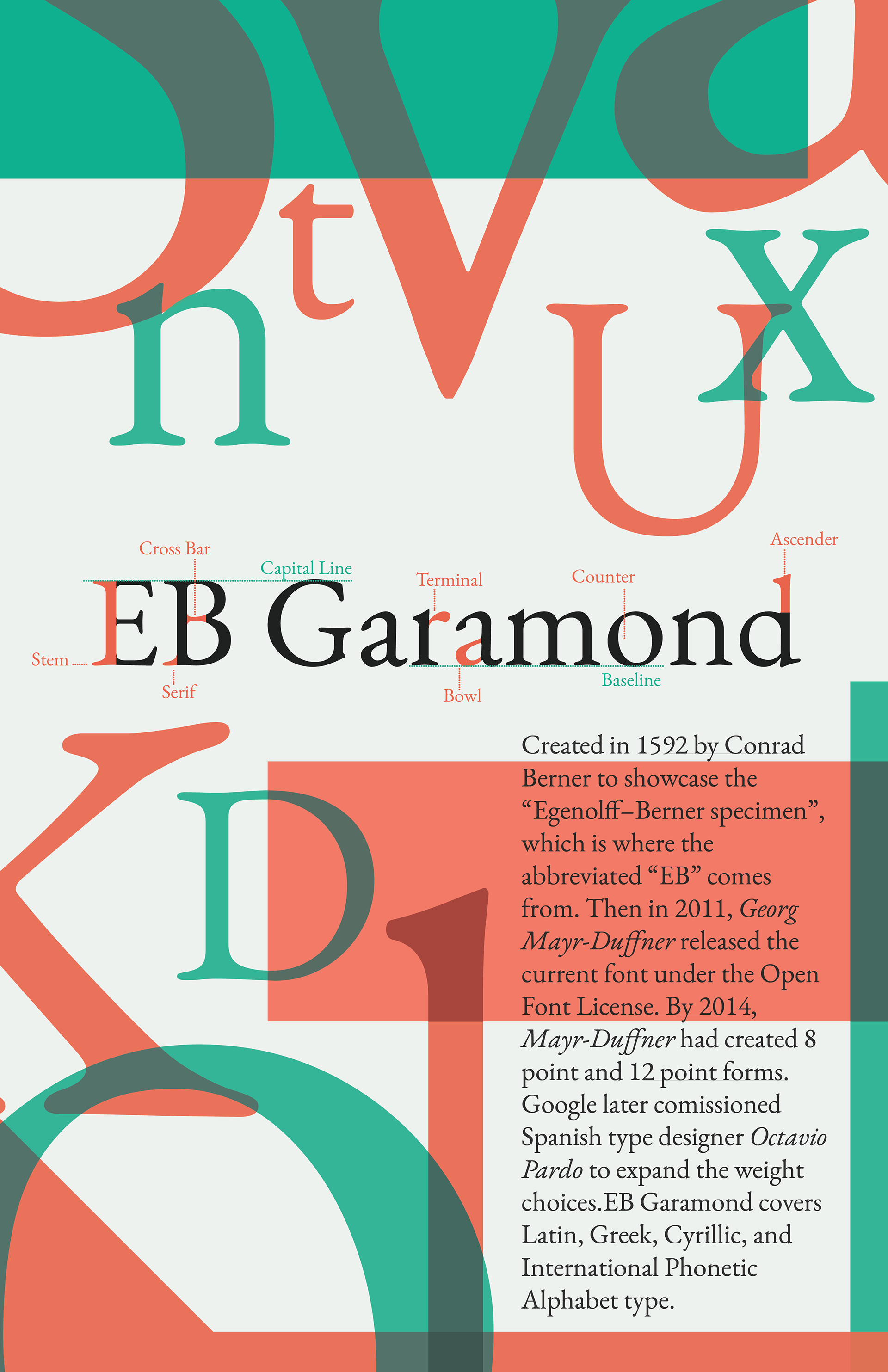 A class project created while learning anatomy of a specific typeface. My chosen font was EB Garamond.